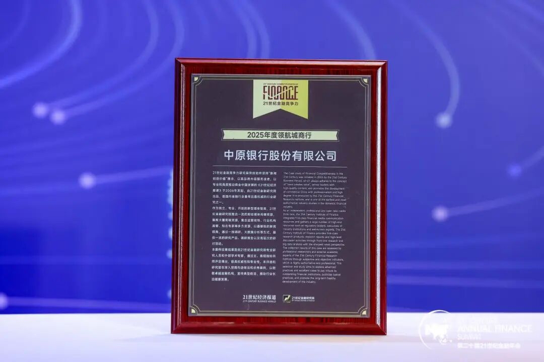 中原银行获“2025年度领航城商行”等荣誉称号